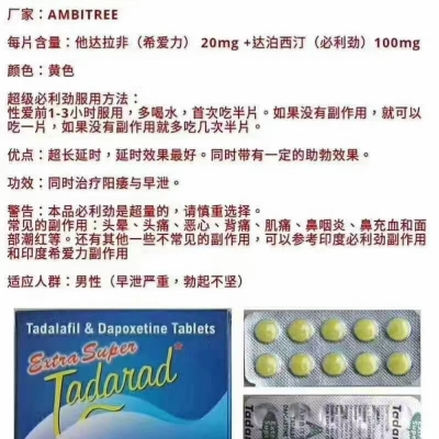 【规格含量】A每一粒含有:达泊西汀100mg+他达拉非20mg