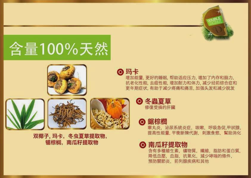 令男人拥有持久战斗力的另一个秘诀就是:双椰子Double Coconut含有丰富的氨基酸、矿物质锌、牛磺酸,有效舒解疲劳,増强肌肉耐力,提升体力和精力。一般女人在抽插性爱中需大约15分钟才能迎来第一次高潮,从第二次高潮起则平均需10分钟才能达到,所以男人必须维持大约60分钟的抽插动作才能让女人享受4至5次的高潮。双椰子Double Coconut除了让男人拥有更好的控制力,也可让男人拥有旺盛的体力,使男人完成一小时的抽插,与爱人一起享受满满的高潮!