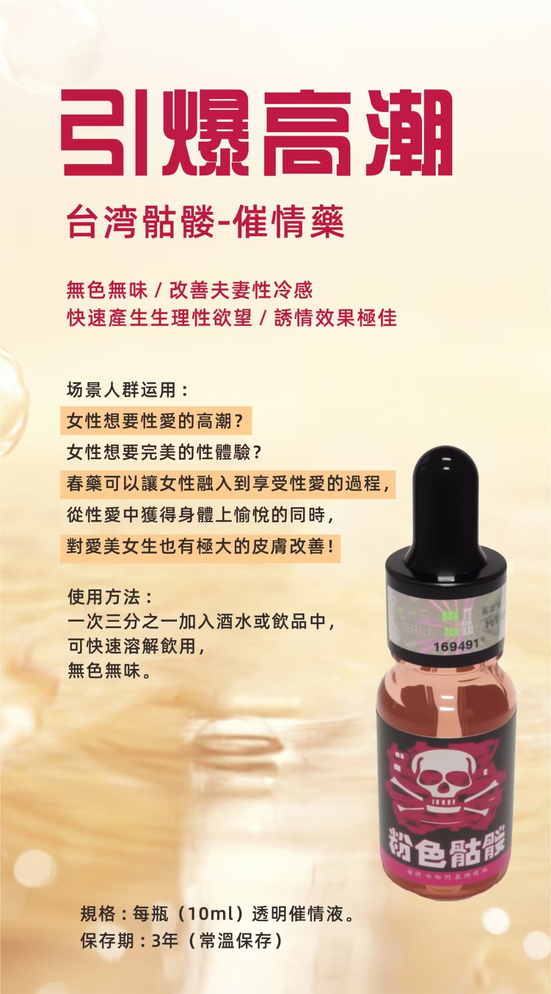 規格 : 每瓶(10ml)透明催情液。